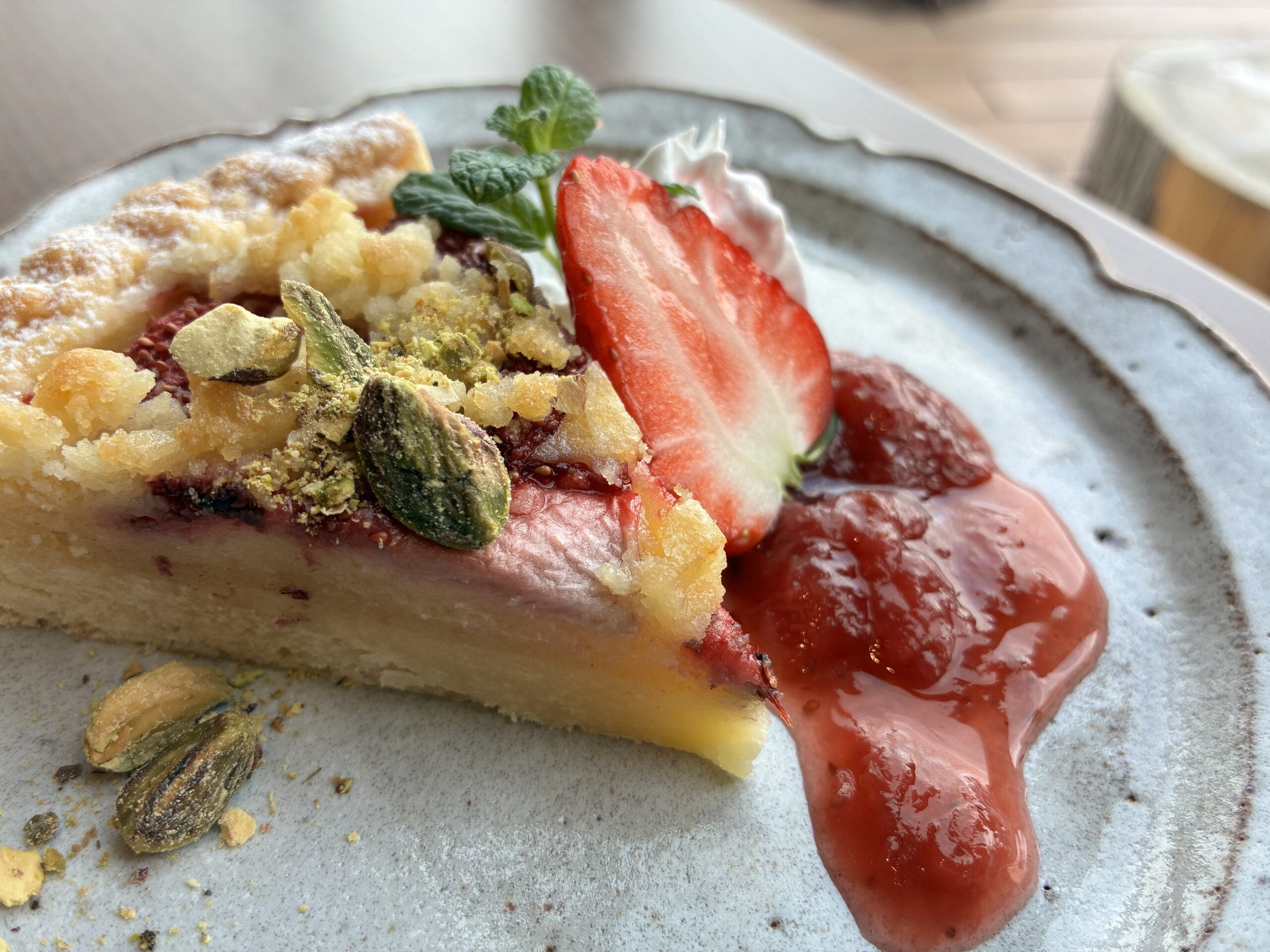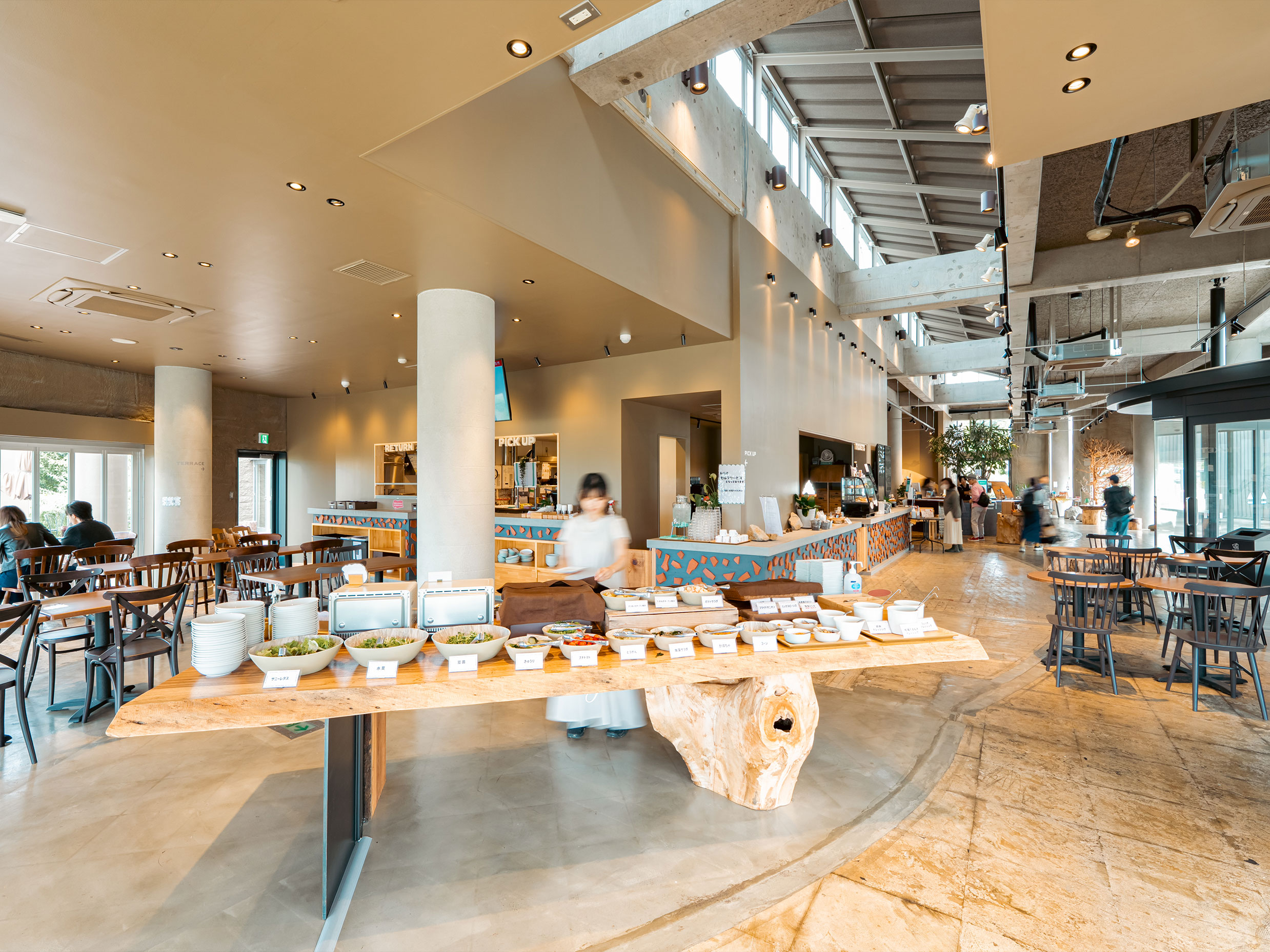 地産地消をテーマに淡路島の食材をふんだんに使用した、軽食やオリジナルスイーツ。地層バスクチーズケーキがおすすめ。パン・サラダ食べ放題のパスタランチビュッフェ。テイクアウトメニューも充実!