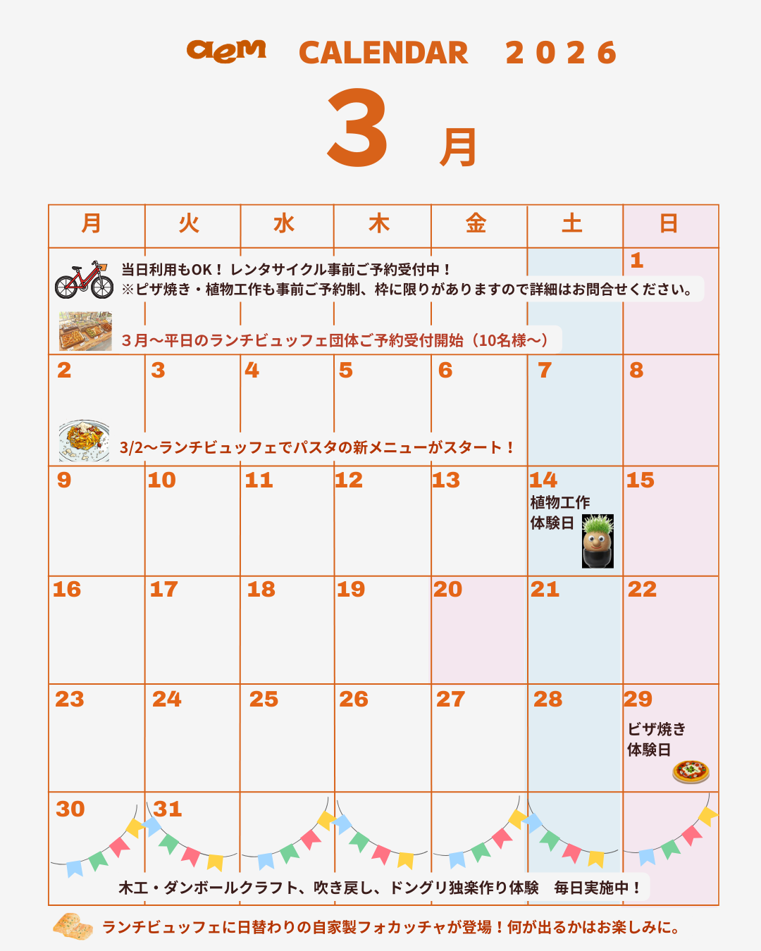 2026年3月の営業カレンダー