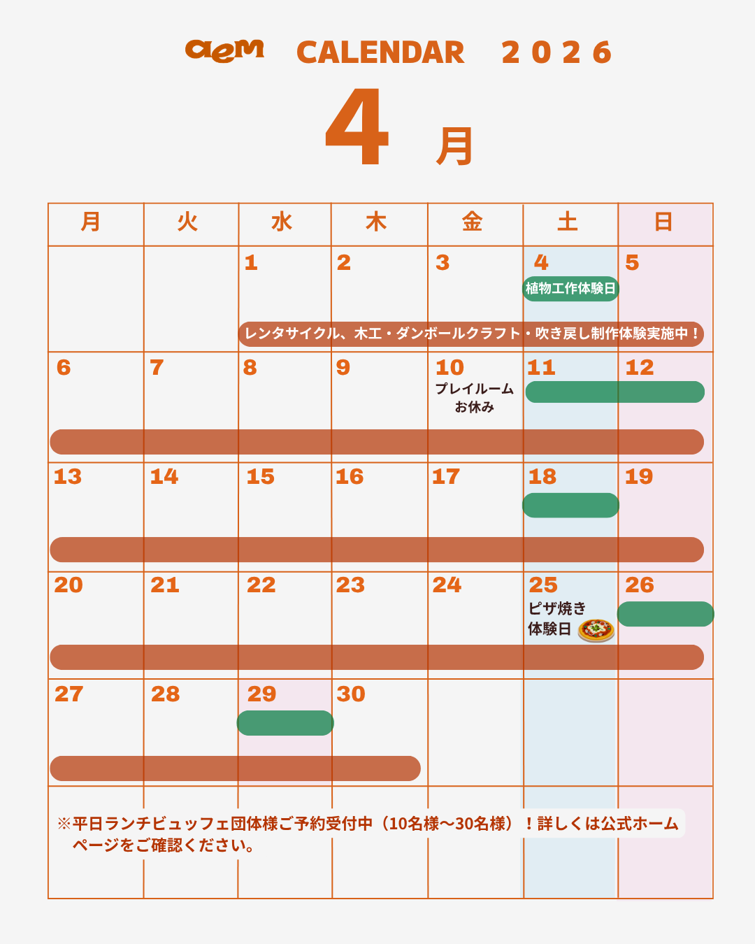 2026年4月の営業カレンダー