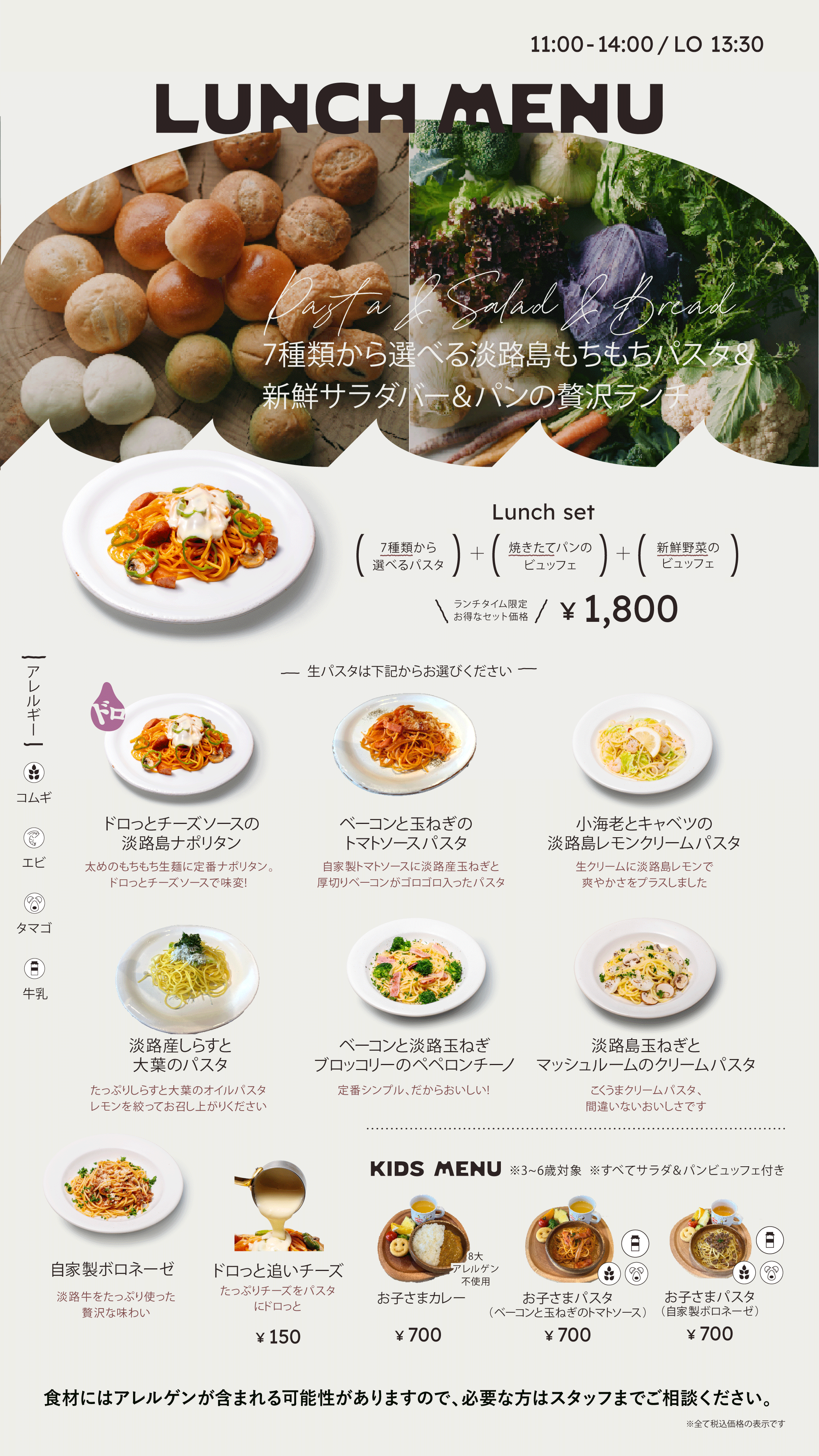 各メニューに含まれるアレルギー物質につきましては、スタッフまでお尋ねください。