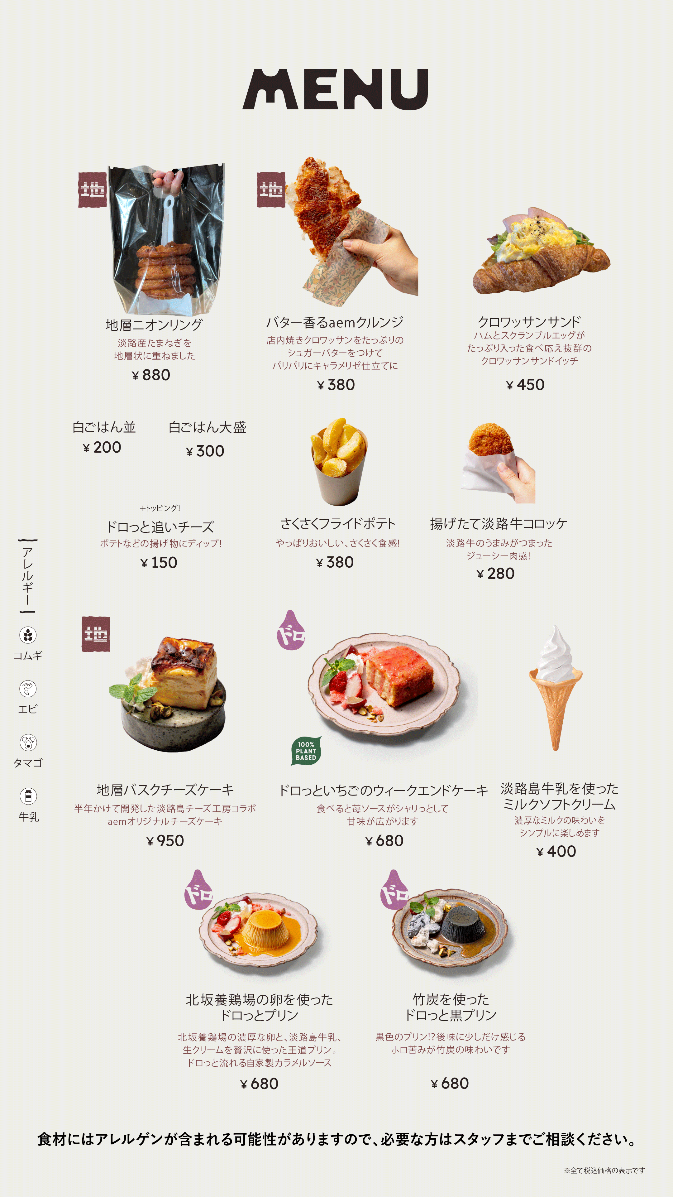 地元のつながりが活きるaemだけのオリジナルメニュー