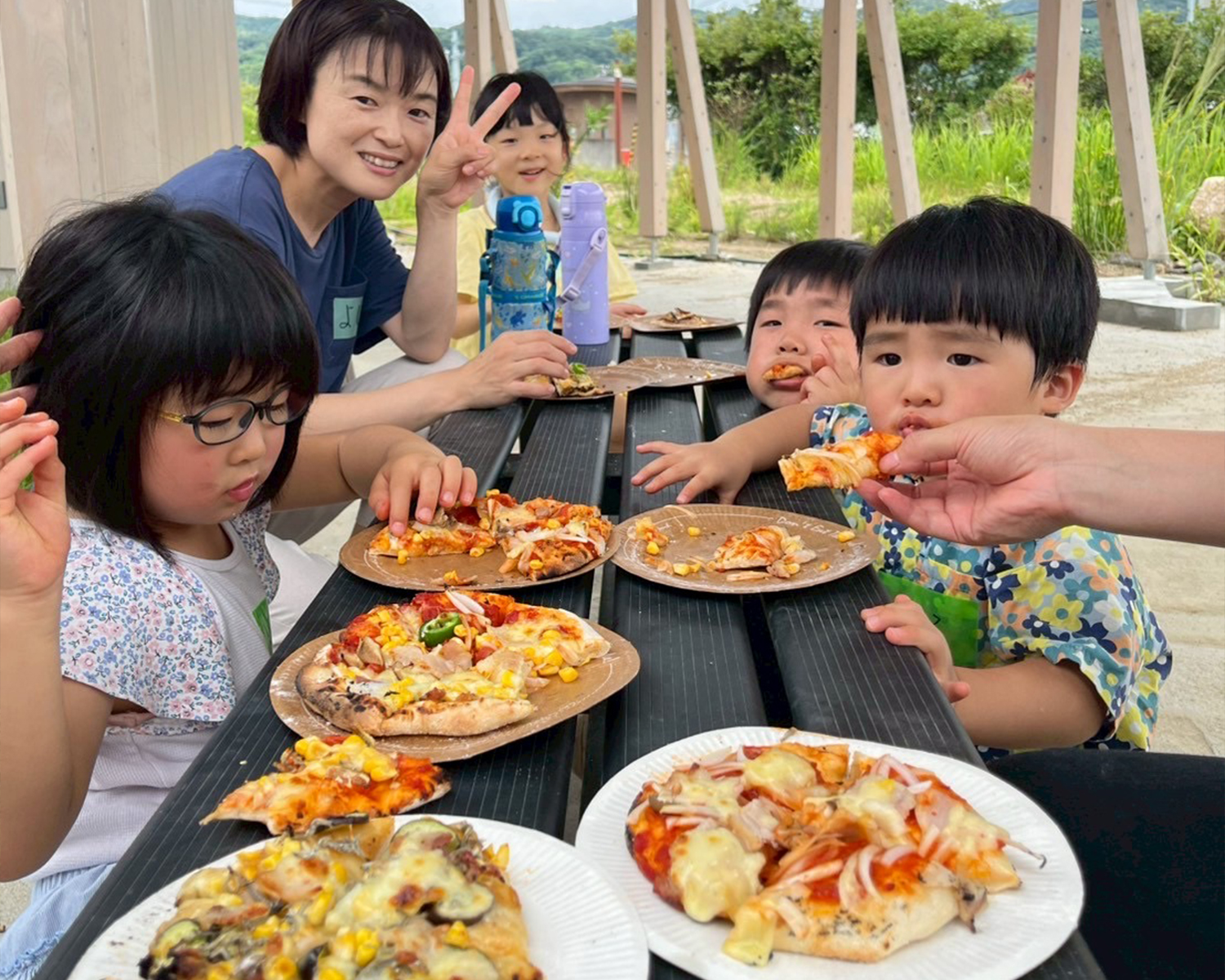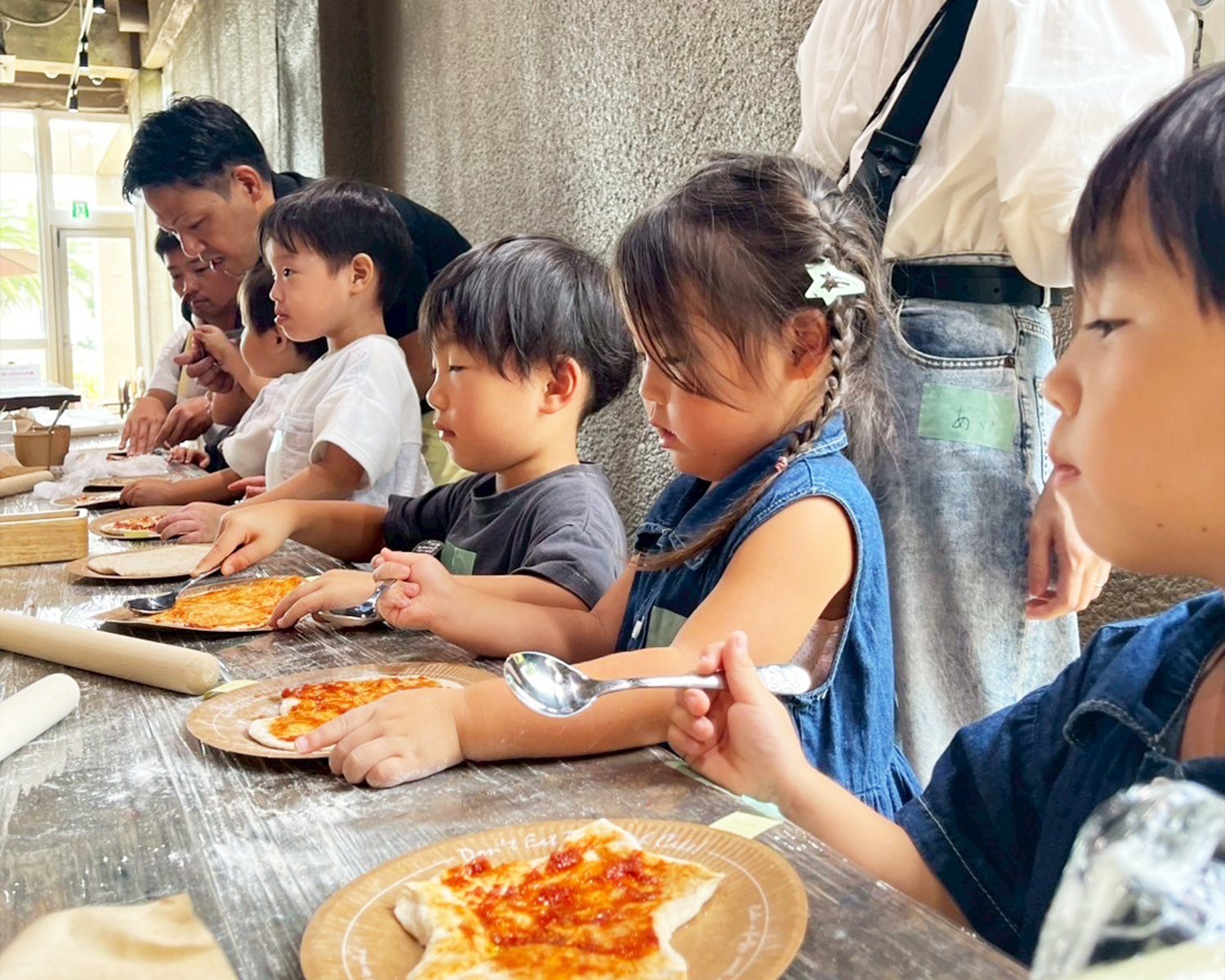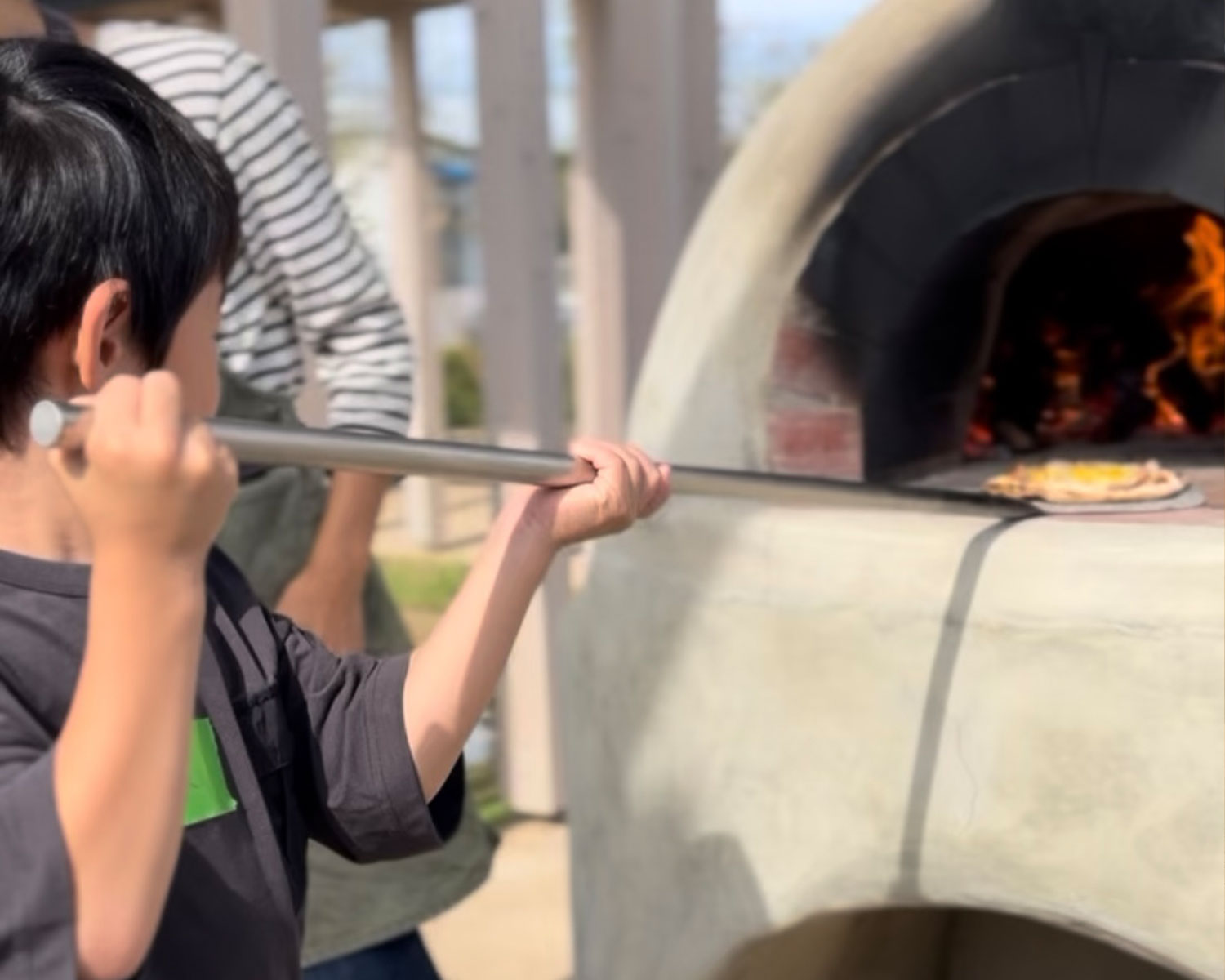 約200人の手で作り上げられた特製粘土窯の「アースオーブン」で焼く、本格ピザ焼き体験。 家族みんなで粉から作り、生地を伸ばして、火を囲んで過ごす特別なひとときを。 毎月開催の、大人気のワークショップです。