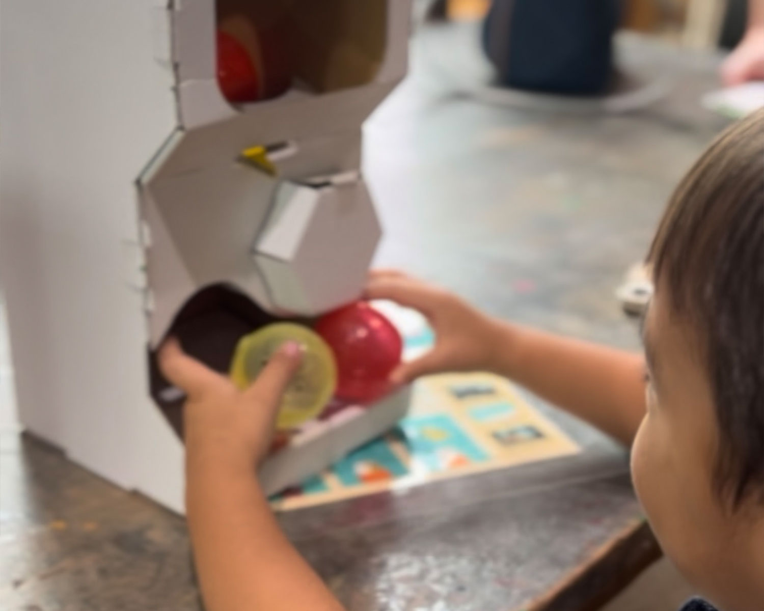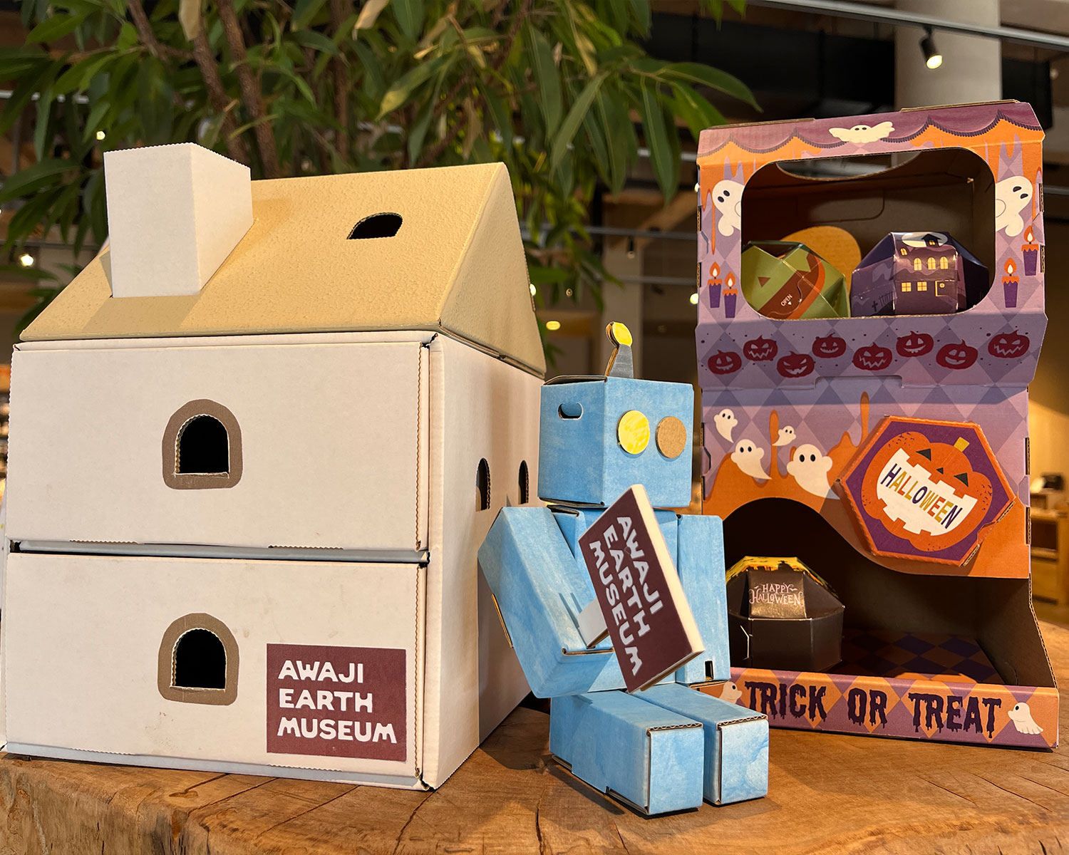 ガチャガチャ、ロボット、お家やランタン。 温もりのあるダンボール素材を組み立て、絵具ペンで自由にデコレーション。 お子様の想像力をかきたてる、親子で夢中になれる工作体験です。