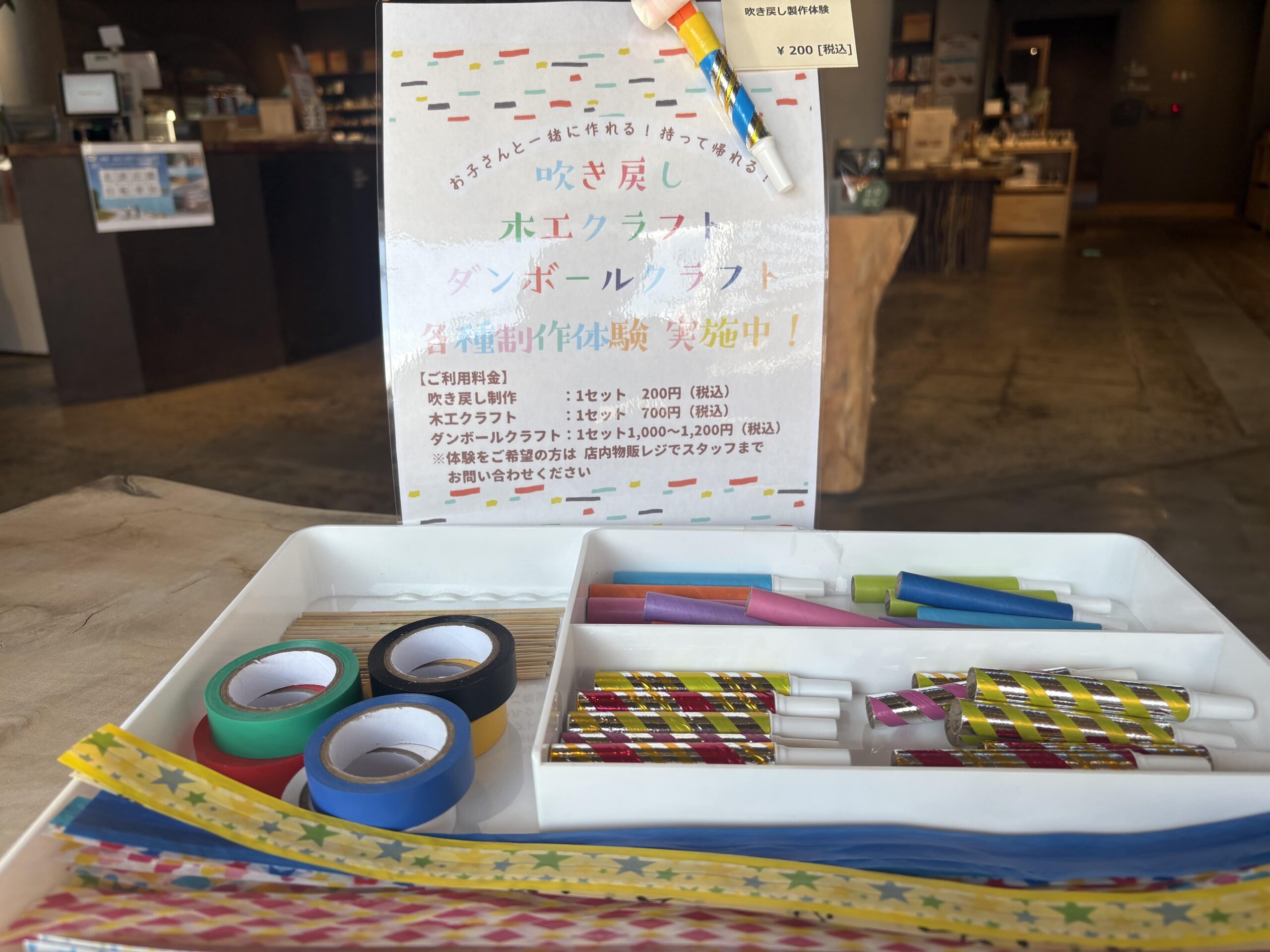 木工クラフト、ダンボール工作、吹き戻しづくりは、当日受付で気軽にお楽しみいただけます。(※混雑状況によりお待ちいただく場合がございます)