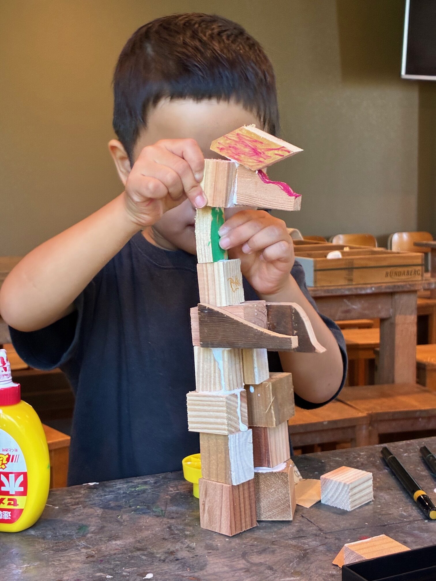 さまざまな形の木材を組み合わせて作る、世界にひとつだけの作品。 ボンドと絵具ペンで、お子様から大人まで気軽に自分だけの創作を楽しめます。 遊びながら感性を育む、親子の思い出作りにもぴったりの体験です。