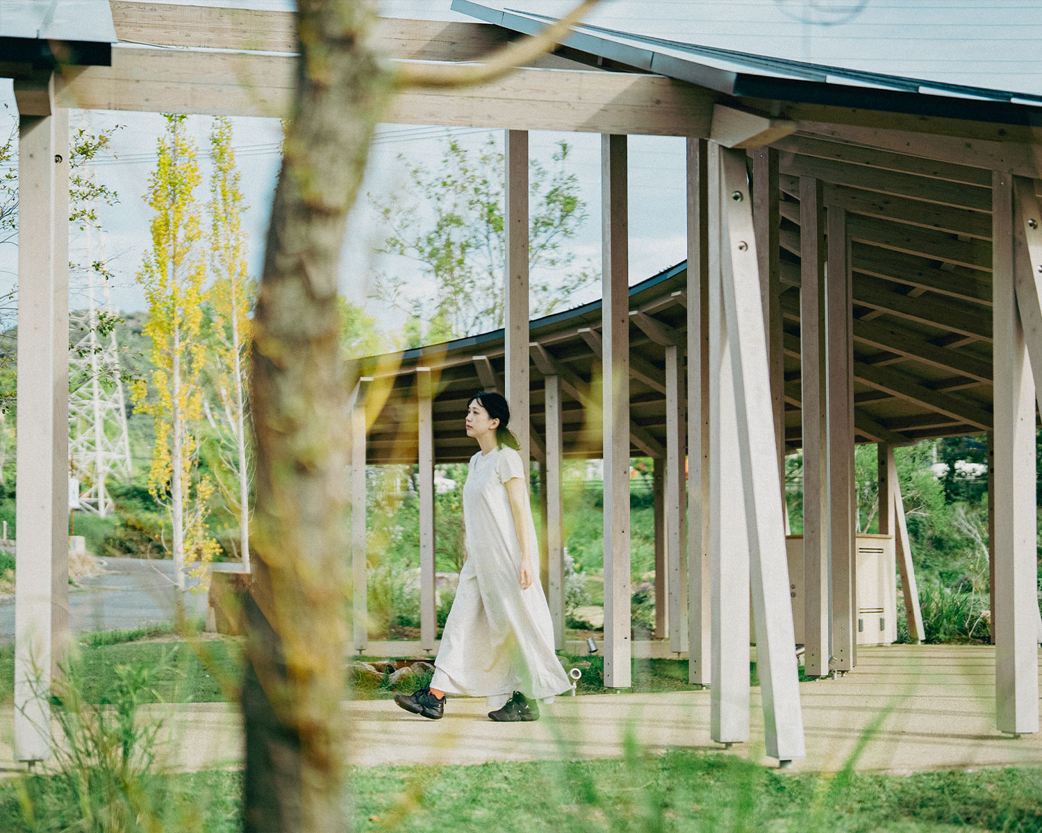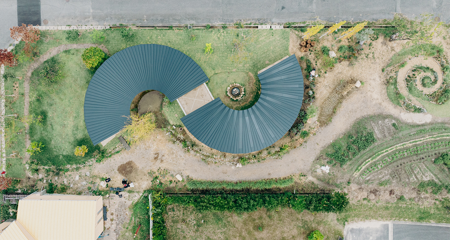 GARDENの中央には、地形や風景・自然になじみ、自然の循環の一部に組み込まれるようなS字型の東屋があります。